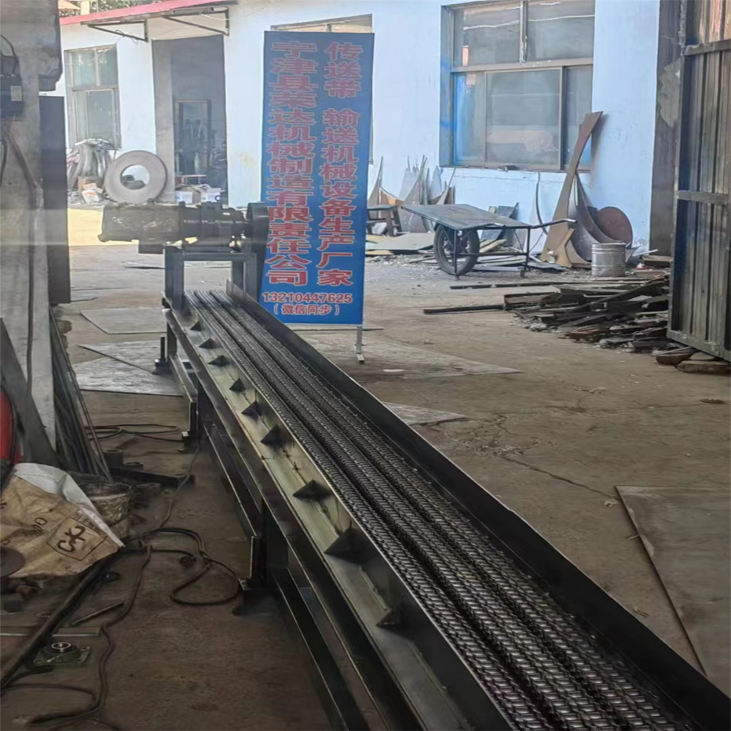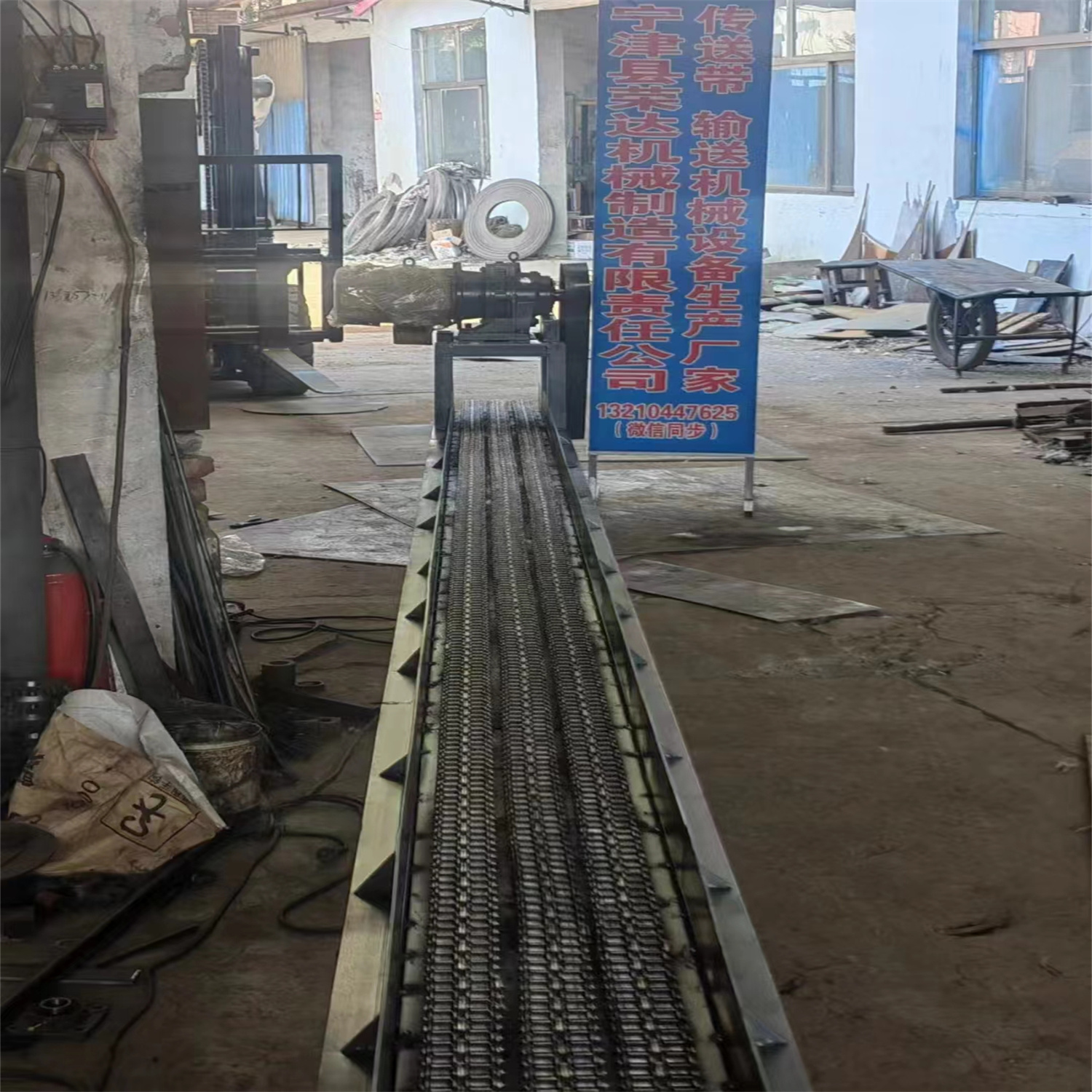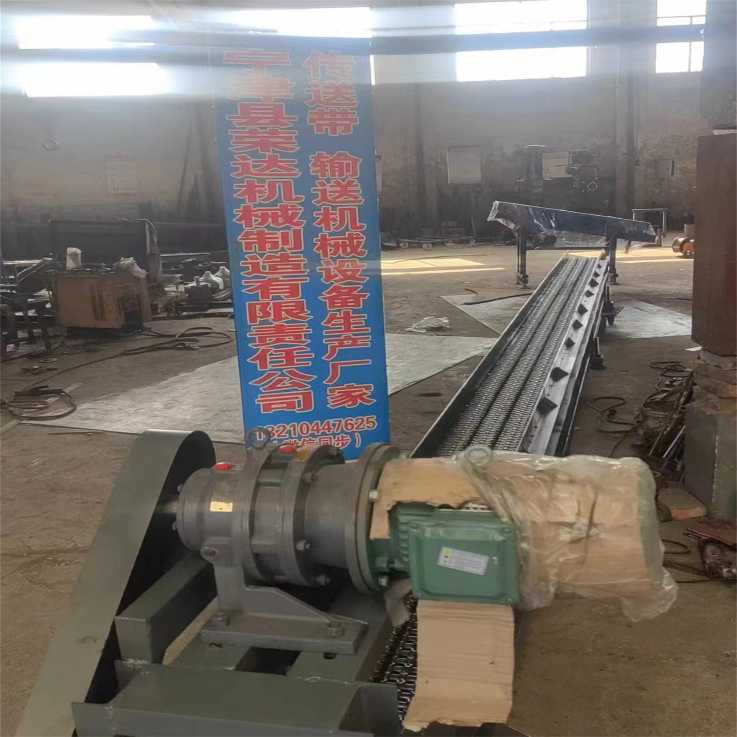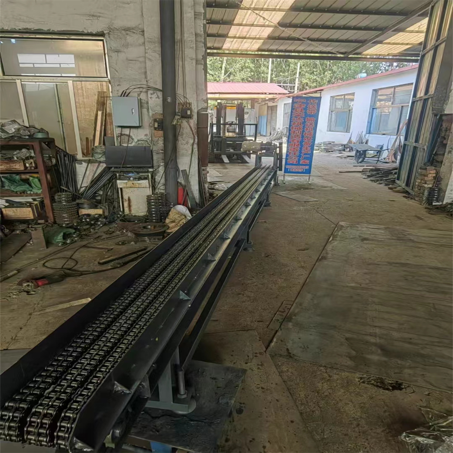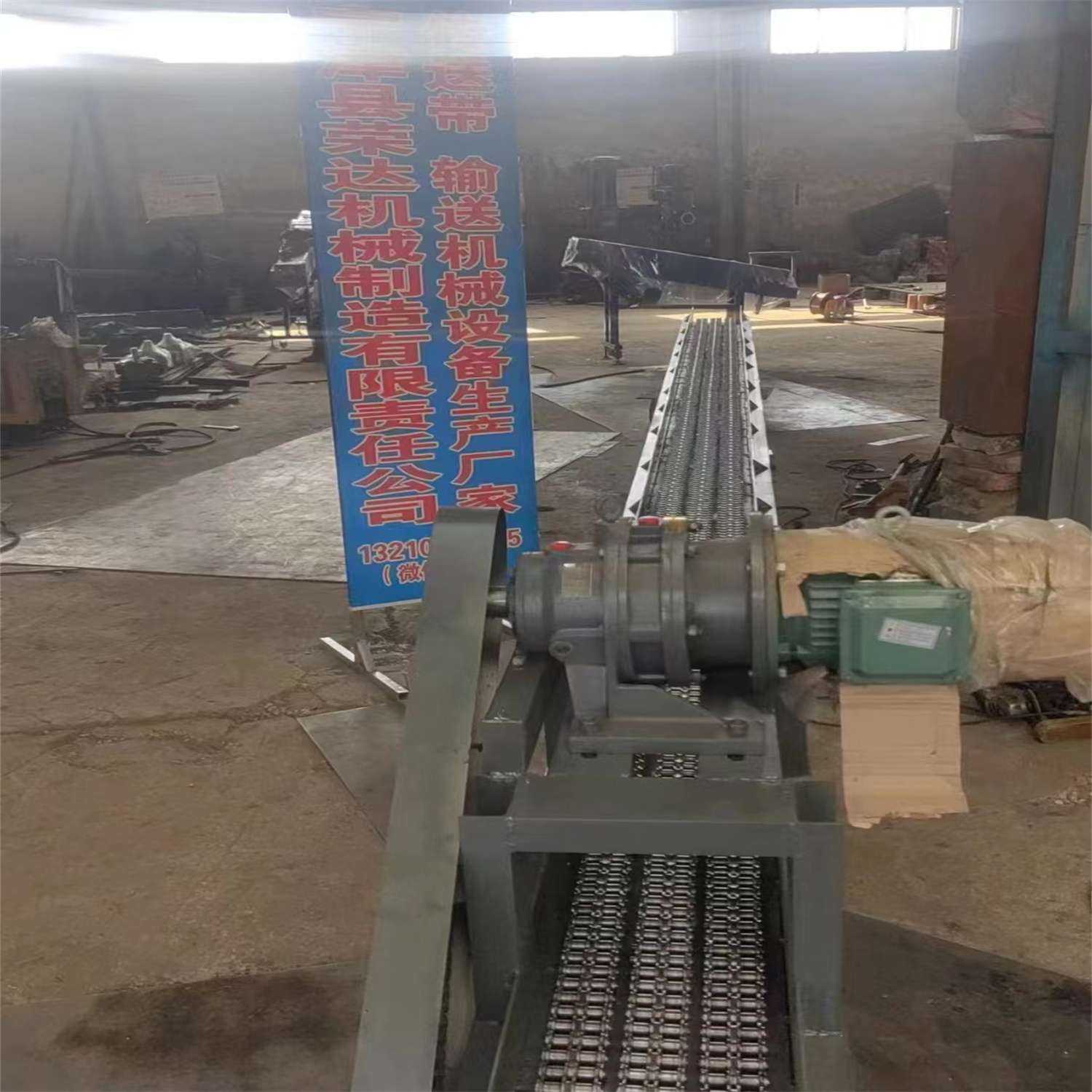 給遼寧錦州北方鐵道機車車輛配件制造有限公司做的傳送帶輸送機完工發貨 鏈條輸送機長度7.2米 有效寬度250毫米 高度450毫米 速度100-150米每分鐘 3千瓦變頻調速
