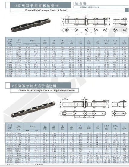 鏈號C2062 節距38.1毫米的雙節距加長銷軸鏈條 雙節距的加長銷軸鏈條的節距最小的是25.4毫米,是直板的輸送鏈條,加長銷軸鏈條分為AB系列精密滾子8字傳動鏈條和雙節距直板輸送鏈條。