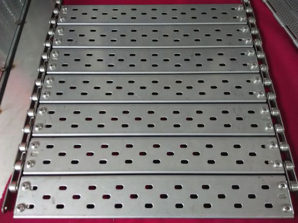 名稱:鏈板輸送帶 別稱:沖孔的鏈條板式輸送帶