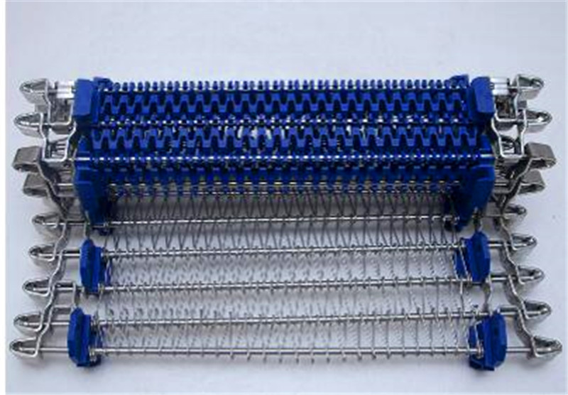 四排鏈條式螺旋網帶 鏈桿螺旋網帶輸送帶 帶擋板馬蹄蓮螺旋網帶 不帶擋板螺旋網帶 帶塑料配件的螺旋網帶。