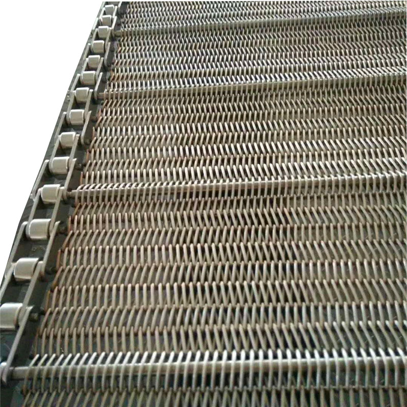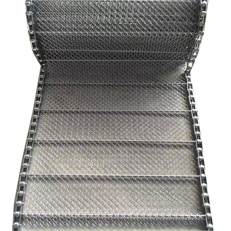 鏈條式網帶由一般的輸送網帶兩側加裝鏈條及橫向支撐桿而成,鏈輪傳動,網帶寬帶固定不變形。調整網帶不同的節距,即可安裝不同形式的鏈條,容易安裝網帶的附屬配件,如擋板,側翼。。。。。網面平整,可承載較重的壓力和拉力,通風透氣性能好,節能環保,網面潔凈無毒,而且容易清洗,維修和拆卸極為方便,鏈條式網帶被廣泛用于食品速凍,蔬菜除沙,清洗殺菌,殺菌預煮,烘烤,干燥,電子行業生產線。