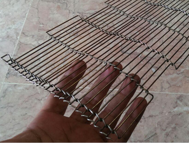 不銹鋼乙型網帶又稱乙字型網帶、巧克力網帶、梯形網帶、一字型網帶、條狀網帶。廣泛用于電子行業線路板的固化、固熔、烘干,回流焊。制蓋行業滴塑烘干;食品行業用于巧克力、餅干、魚片烘烤、速凍、干燥之用、乙型網帶邊緣可采用鏈條驅動。乙型網帶一般采用不銹鋼304的金屬絲做成,因為304不銹鋼絲硬度大,做成的輸送網帶,網面平整。乙型網帶的絲徑1.0 1.2 1.5 1.6 1.8 2.0 2.5 3.0毫米都能做。乙型網帶耐高溫,耐酸堿,防腐蝕,自重輕,開孔率大。乙型網帶一般的節距8毫米,9毫米,10毫米。