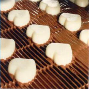 涂層設備乙型網帶 Coated with a layer of chocolate flat flex belt 這種設備上用不銹鋼304的材質,不生銹,易清洗,耐腐蝕和酸堿,開孔率大,耐壓力,平穩性好,拉力強,自重輕,壽命長。