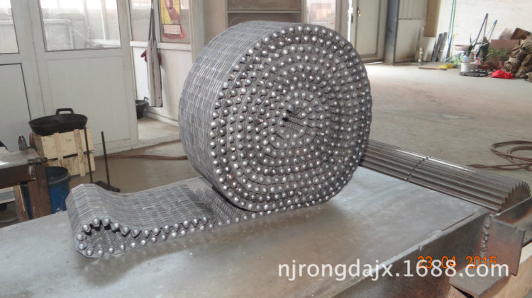 2015年08月18日給江蘇揚州做的無尖齒形鏈條48.5米,寬度150毫米,1300元一平方米,無尖。5米為一件,木箱包裝,錳鋼材質,滲碳熱處理淬火煮黑