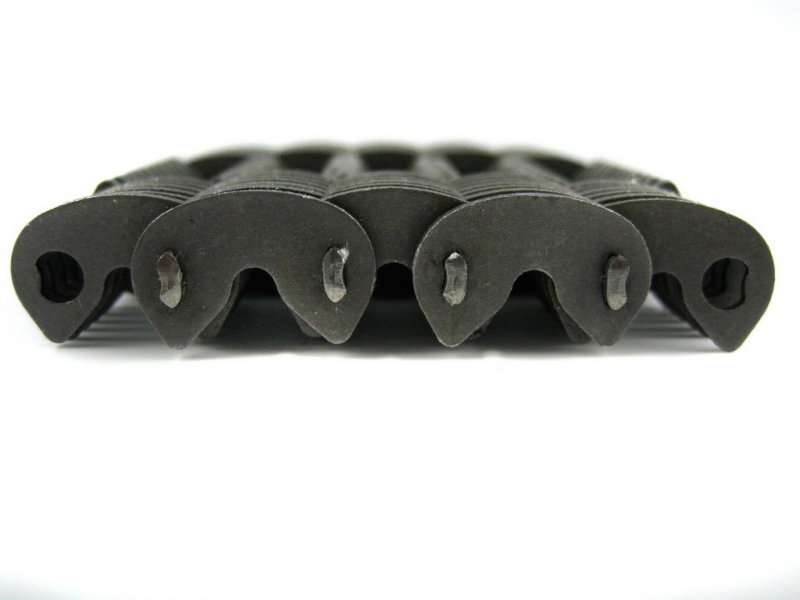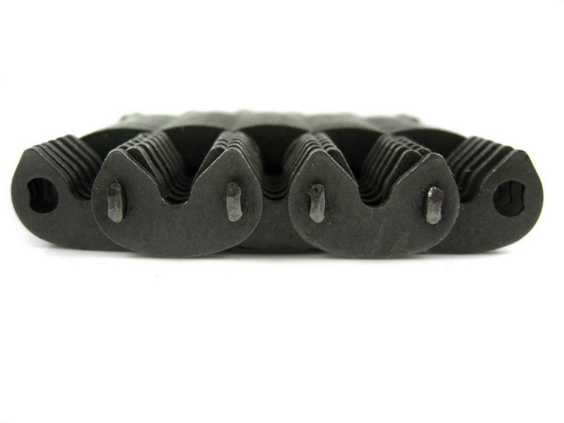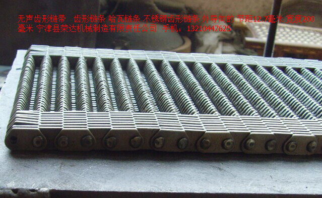 無尖齒形鏈條:是無聲鏈條中的一種,沒有尖,平的,齒形鏈條的節距12.7毫米,鏈片厚度1.5毫米,鏈寬根據客戶要求定做。