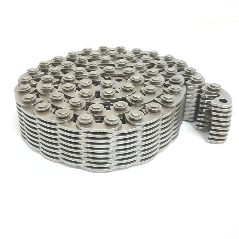 齒形鏈?zhǔn)且环N應(yīng)用廣泛的重要機(jī)械基礎(chǔ)件,主要用在高速、重載、低噪音、大中心距的工況下,其傳動性能優(yōu)于齒形帶傳動、齒輪傳動以及滾子傳動,以成為眾多行業(yè)首選對傳動形式之一,以嚙合形式分可分為內(nèi)嚙合齒形鏈、外嚙合齒形鏈和內(nèi)外復(fù)合嚙合齒形鏈,其中內(nèi)外復(fù)合嚙合齒形鏈的噪音最小,應(yīng)用也最廣泛。