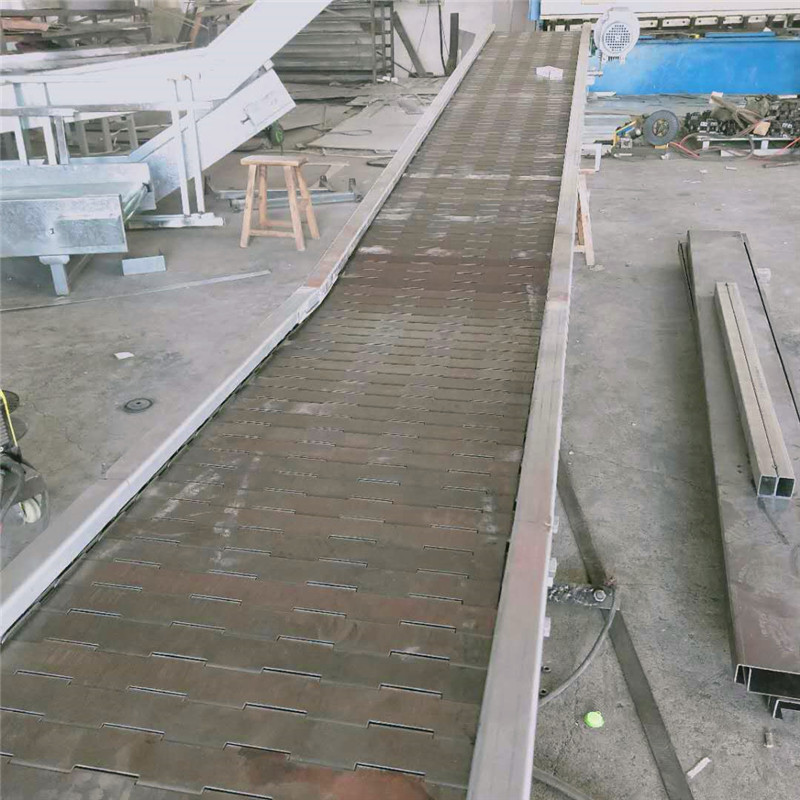 給客戶定做的鏈板輸送機,長度7.5米 寬度50公分 一頭 高度1.1米 另一頭80公分 一般速度。工期4天。