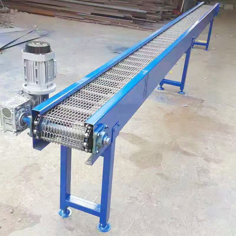 鏈條式網帶由一般的輸送網帶兩側加裝鏈條及橫向支撐桿而成,鏈輪傳動,網帶寬帶固定不變形。調整網帶不同的節距,即可安裝不同形式的鏈條,容易安裝網帶的附屬配件,如擋板,側翼。。。。。網面平整,可承載較重的壓力和拉力,通風透氣性能好,節能環保,網面潔凈無毒,而且容易清洗,維修和拆卸極為方便,鏈條式網帶被廣泛用于食品速凍,蔬菜除沙,清洗殺菌,殺菌預煮,烘烤,干燥,電子行業生產線。