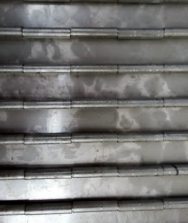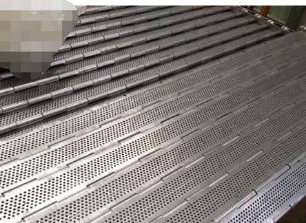 鏈板輸送帶非常堅固,由不銹鋼鏈條驅動,采用不銹鋼板材生產,適合用于輸送細小的高密度物件,輸送過程中運轉平穩,安裝更換方便,使用壽命較長。用于中等和大負荷輸送。鋼板彎曲形成合葉,使用支軸將合葉和鏈條串在一起。兩端的鏈條可以使用開口銷或者墊圈來固定,使用開口銷方便拆卸,維護方便。鏈板大概分:1,按照材質分:碳鋼鏈板輸送帶,鍍鋅鏈板輸送帶,不銹鋼201鏈板輸送帶,不銹鋼304鏈板輸送帶,其他不銹鋼鏈板輸送帶。2,根據外形來分:平鏈板輸送帶,帶橫擋板鏈板輸送帶,帶擋邊鏈板輸送帶,沖孔鏈板輸送帶(圓孔,長條孔),帶凸起鏈板輸送帶。3,根據輸送形式分:直輸鏈板輸送帶,拐彎的鏈板輸送帶。4,合頁鏈板輸送帶,排屑鏈板輸送帶,槽鋼鏈板輸送帶。5,雙節距鏈條鏈板帶,精密滾子鏈條鏈板輸送帶。