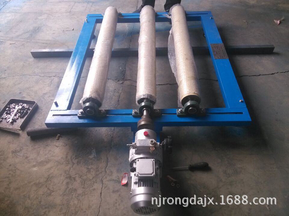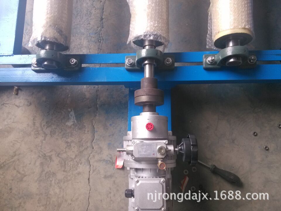 2016年給合肥做的滾軸機械,是用來滾瓶子的,瓶子里裝有液體,通過轉動瓶子,液體被混合均勻,長度1米,寬度70公分,高度750毫米,滾筒直徑89毫米,包膠,綠色膠,滾筒的兩根能夠轉動,兩根不能轉動,滾筒的間距能調節,6500元一臺