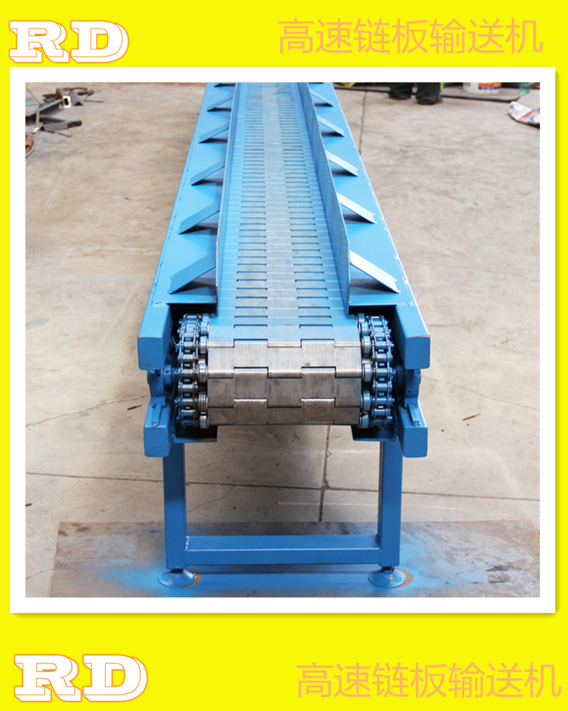 9, 無聲高速鏈板輸送機具備了鏈條輸送機的高速,也具備了鏈板輸送機的穩定性,也具備了鏈板的無縫隙不卡料。