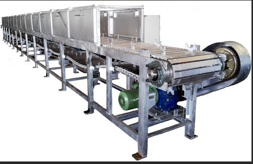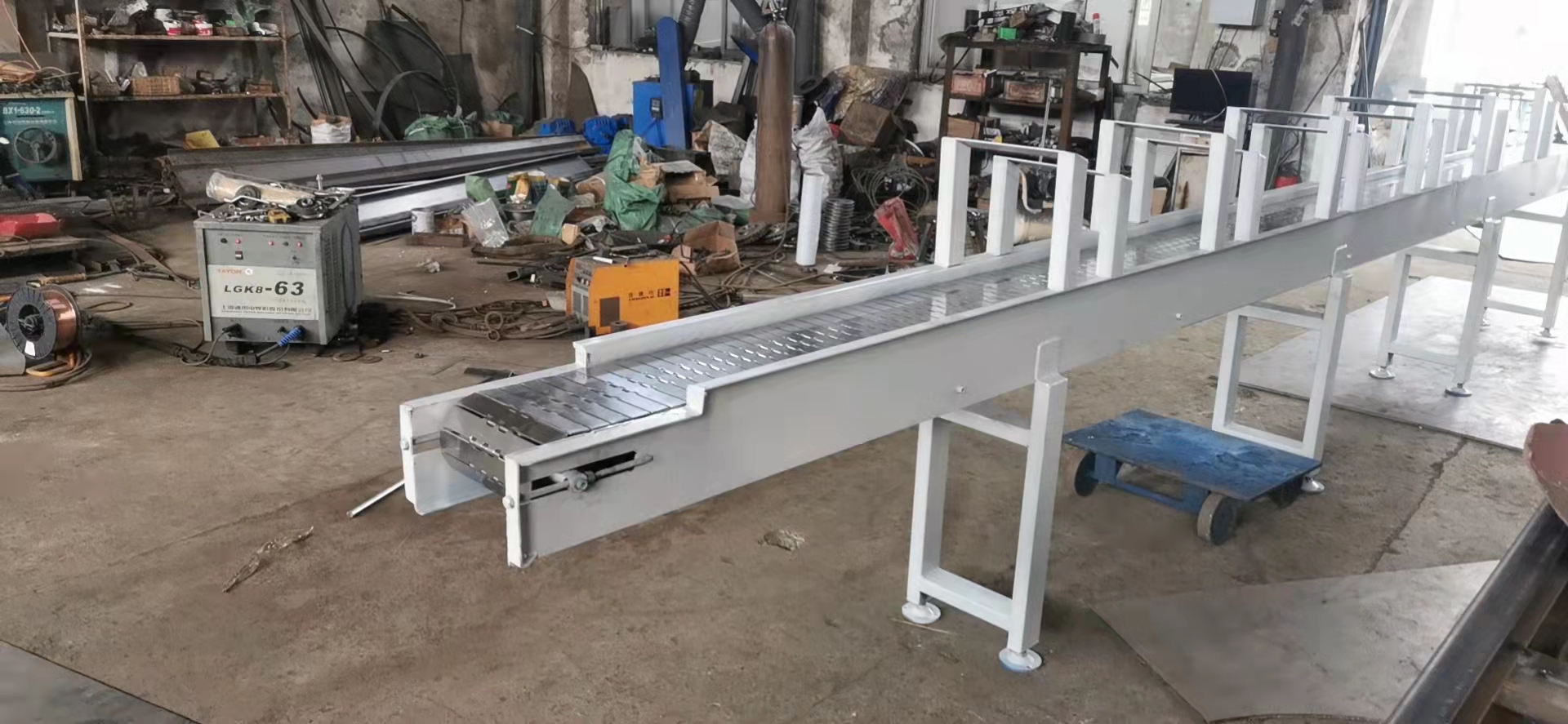鍛造件鏈板輸送機是直接輸送高溫鍛造件的,其輸送帶必須能不怕熱,不變形,還耐高溫很強才可以承載鍛造件。我們采用的是耐熱的不銹鋼鏈板輸送帶。根據寬度不同,有平頂鏈鏈板輸送帶,合頁鏈板輸送帶和槽鋼鏈板輸送帶。已標準的頂板鏈或合頁鏈板輸送帶為承載面,以馬達減速機做動力傳動。