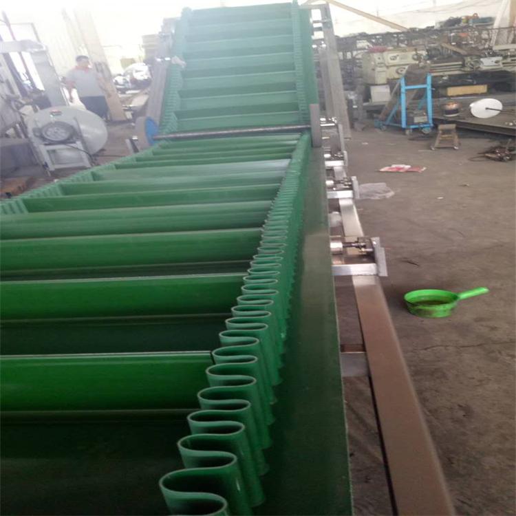 產品規格:綠色皮帶提升輸送機,帶橫側擋板的綠色皮帶機,帶裙邊輸...