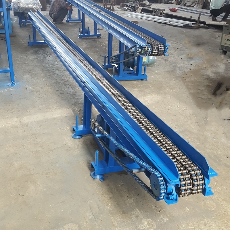 3,輸送熱鍛造件有坡度最佳方案是用鏈板輸送機,鏈桿輸送機,其次是精密滾子鏈條輸送機,不應該采用無聲齒形鏈帶或者無聲齒形鏈條輸送機。
