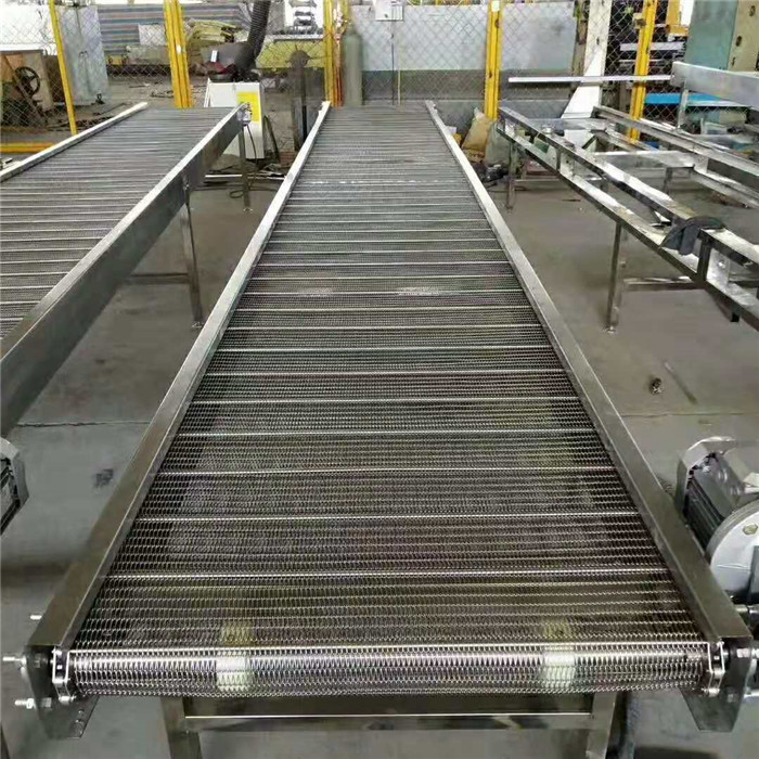 網鏈輸送機 該輸送機用于物料的輸送。采用不銹鋼網帶作為載體,適用于各種食品行業的烘干、去濕、冷凍等、熱處理等;不銹鋼制成,具有耐高溫、便于清洗等特點。