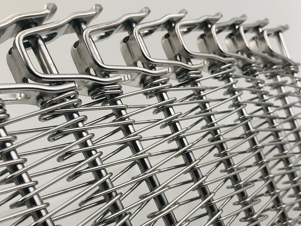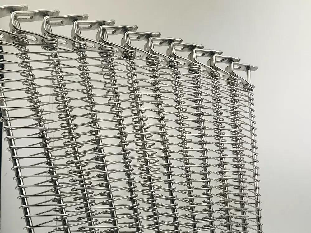 螺旋網采用高抗拉不銹鋼絲經進口數控網帶成型機加工生產,網面強硬耐用,不易變形。網面平整,焊接牢固,轉彎性能好,可以實現 180度和360度的轉彎。可以承載較重的壓力和拉力,維修和拆卸極為方便,可以根據應用設計網面有絲網,網面無絲網,網帶兩側加裝擋板或者網帶中間加裝鏈條。
