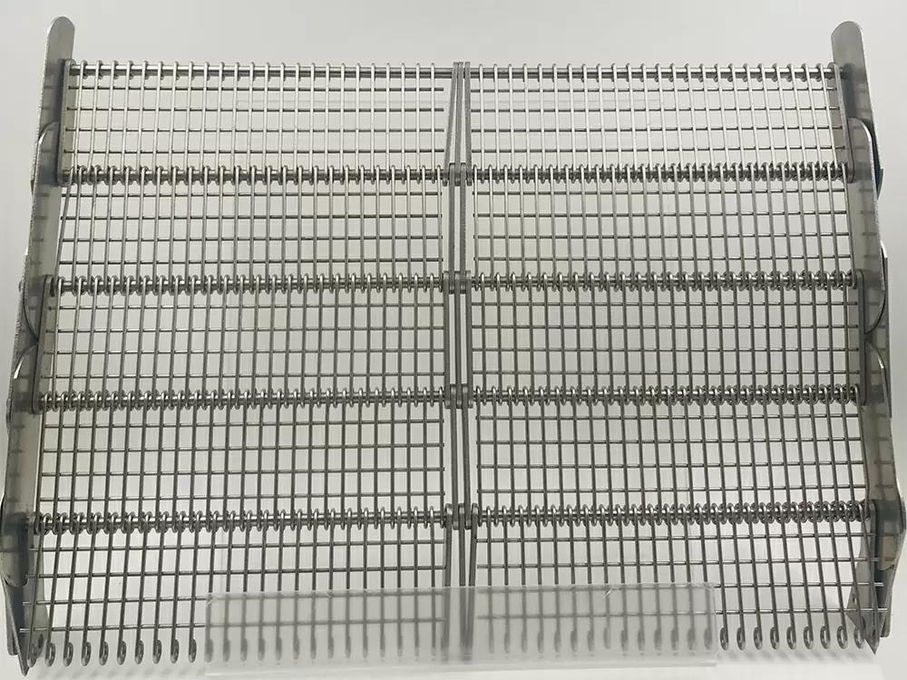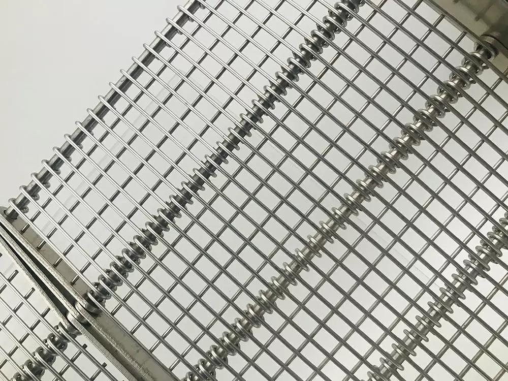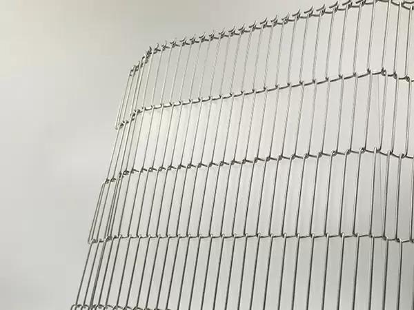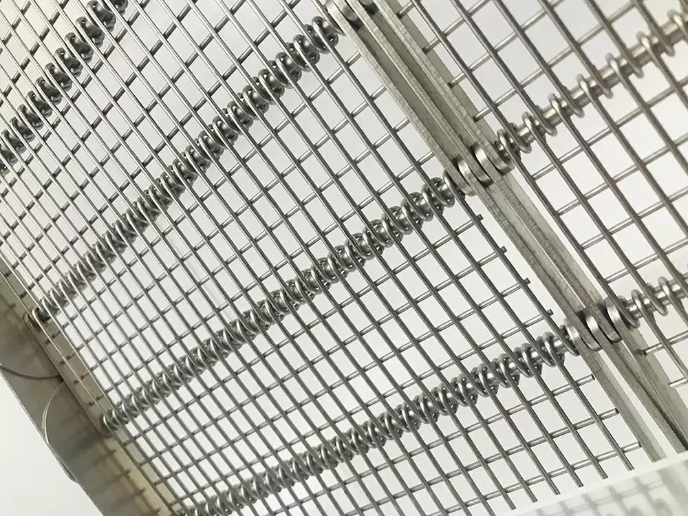 眼鏡網使用進口自動化螺線成型機生產加工, 網絲做成眼鏡形狀, 使用支軸串起來做成的網帶,眼睛線圈采用高抗拉線材生產,強度高,耐磨性好。網帶邊緣可以使用鏈片焊接或者組裝鏈條。眼睛網設計可以在網帶邊緣加側擋板和網面中間加裝橫擋板.