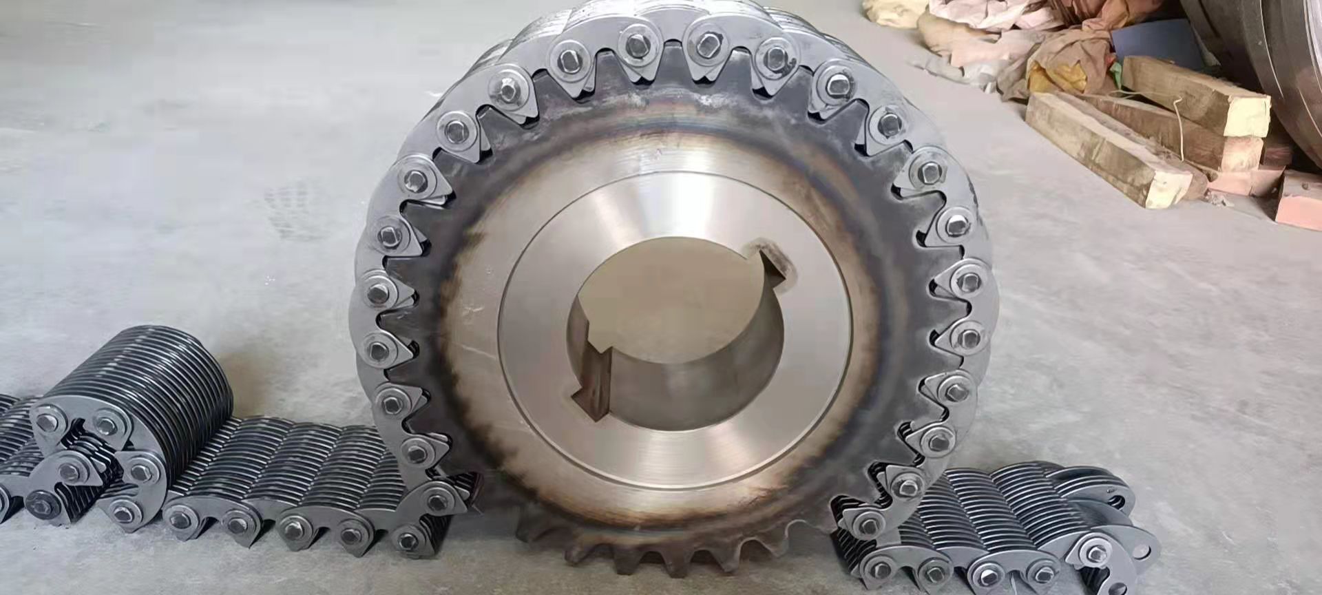 無聲鏈 齒形鏈輪 無聲鏈:也叫齒形鏈條,采用無聲齒形鏈輪帶動運轉傳動。寧津縣榮達機械制造有限責任公司定做各種無聲齒形鏈條,無聲齒形鏈輪。我們根據客戶自己的情況,客戶選型成功,我們根據客戶的數據非標定做各種齒形鏈條和無聲齒形鏈輪。齒形鏈條節距4.7625,6.35 9.525 12.7 15.875 19.05 25.4 31.75 38.1毫米的鏈條都能做,無聲齒形鏈輪根據客戶的齒數和外徑,內孔,鍵槽定做。無聲齒形鏈條的獨特優點:高速,無噪音,高承載傳動能力,轉矩大等等優點,逐漸取代精密滾子鏈條和同步帶。