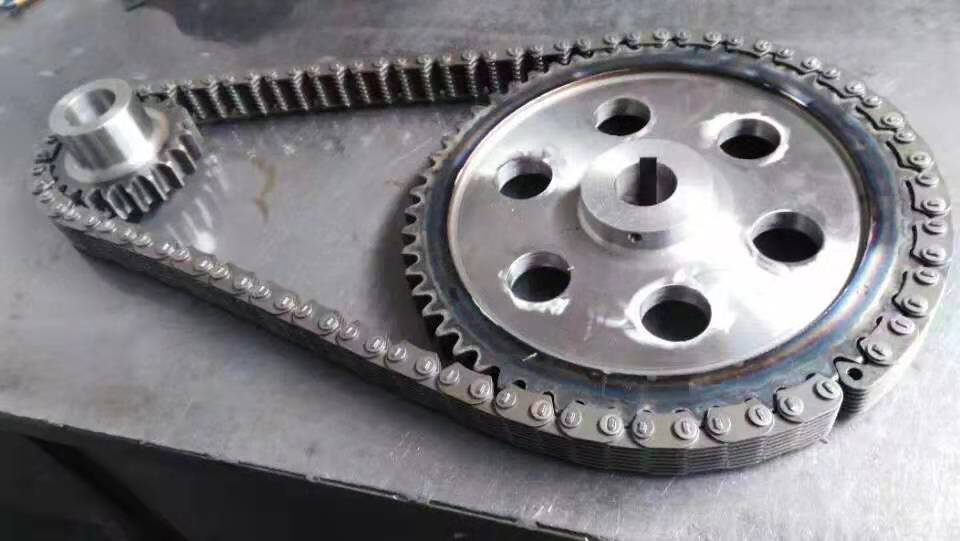 無聲鏈 齒形鏈輪 無聲鏈:也叫齒形鏈條,采用無聲齒形鏈輪帶動運轉傳動。寧津縣榮達機械制造有限責任公司定做各種無聲齒形鏈條,無聲齒形鏈輪。我們根據客戶自己的情況,客戶選型成功,我們根據客戶的數據非標定做各種齒形鏈條和無聲齒形鏈輪。齒形鏈條節距4.7625,6.35 9.525 12.7 15.875 19.05 25.4 31.75 38.1毫米的鏈條都能做,無聲齒形鏈輪根據客戶的齒數和外徑,內孔,鍵槽定做。無聲齒形鏈條的獨特優點:高速,無噪音,高承載傳動能力,轉矩大等等優點,逐漸取代精密滾子鏈條和同步帶。