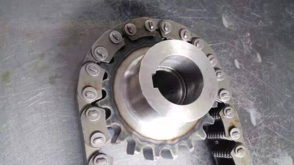 無聲鏈 齒形鏈輪  無聲鏈:也叫齒形鏈條,采用無聲齒形鏈輪帶動運轉傳動。寧津縣榮達機械制造有限責任公司定做各種無聲齒形鏈條,無聲齒形鏈輪。我們根據客戶自己的情況,客戶選型成功,我們根據客戶的數據非標定做各種齒形鏈條和無聲齒形鏈輪。齒形鏈條節距4.7625,6.35  9.525  12.7  15.875  19.05  25.4  31.75  38.1毫米的鏈條都能做,無聲齒形鏈輪根據客戶的齒數和外徑,內孔,鍵槽定做。無聲齒形鏈條的獨特優點:高速,無噪音,高承載傳動能力,轉矩大等等優點,逐漸取代精密滾子鏈條和同步帶。