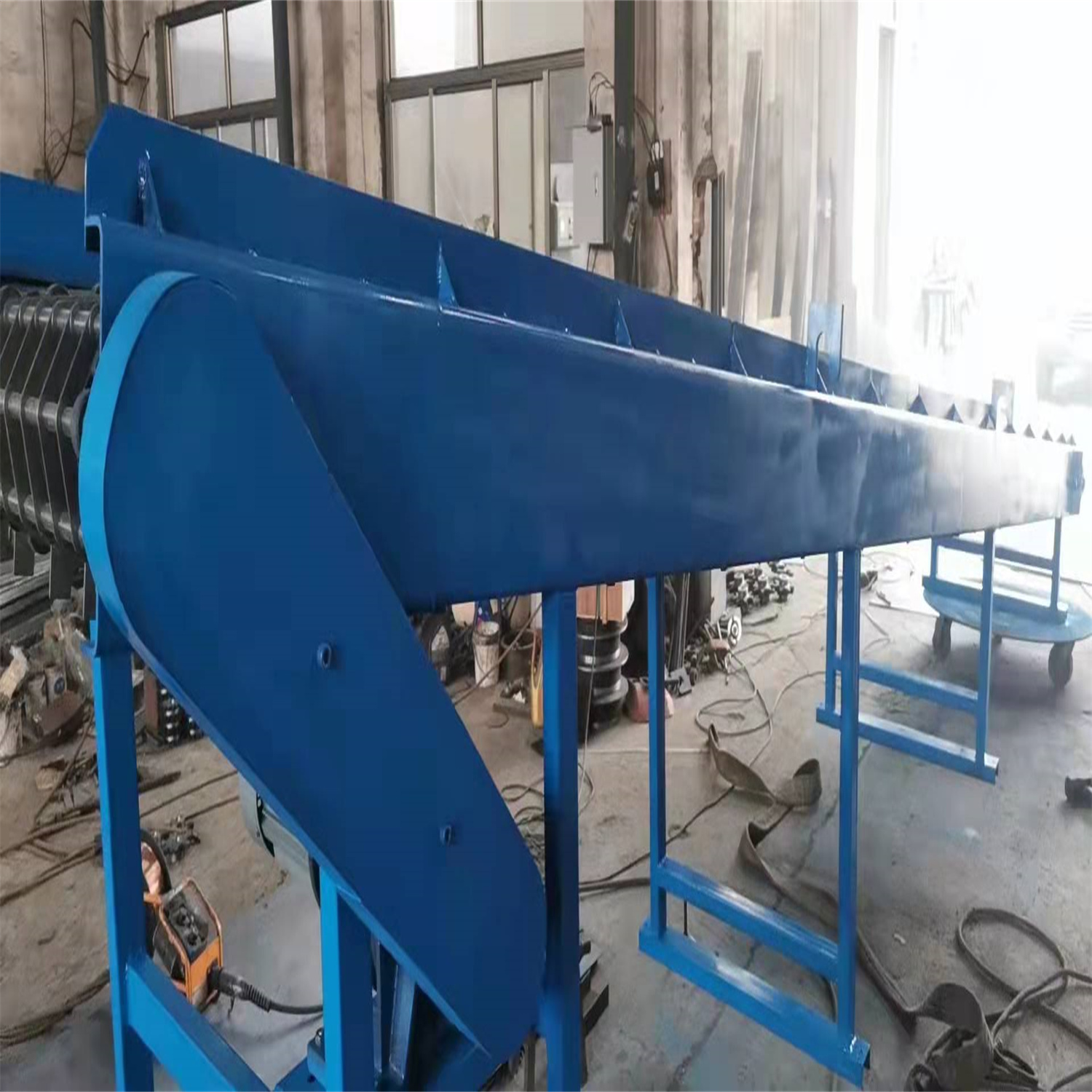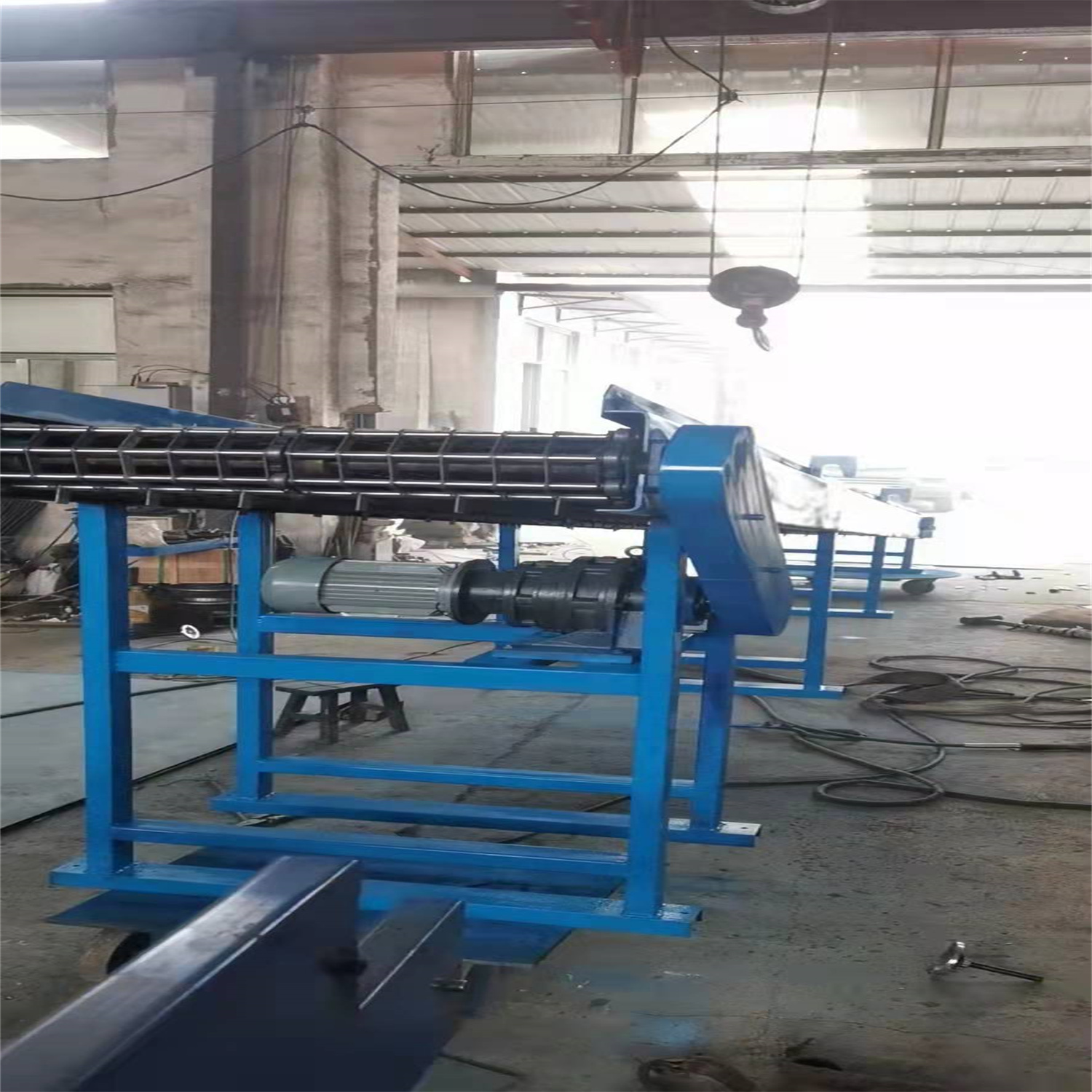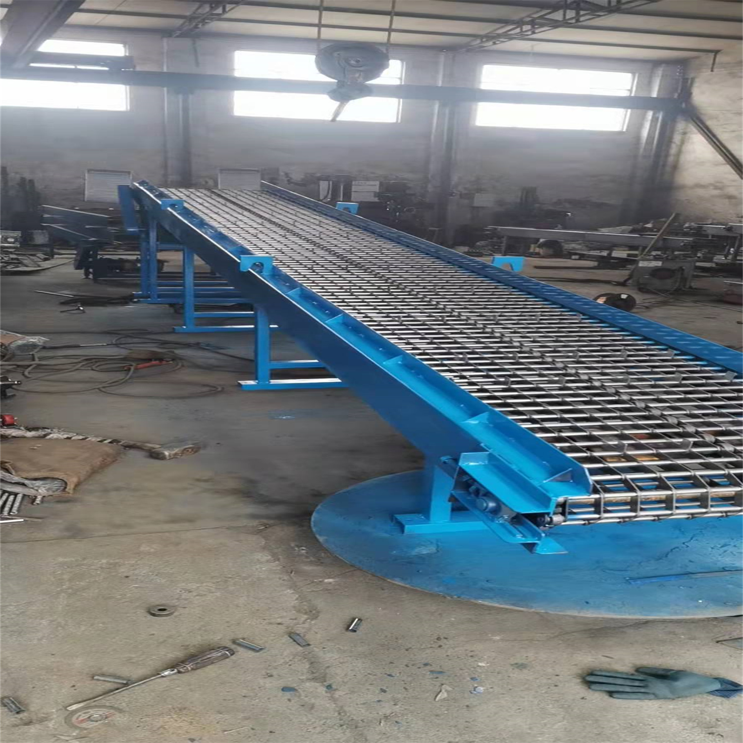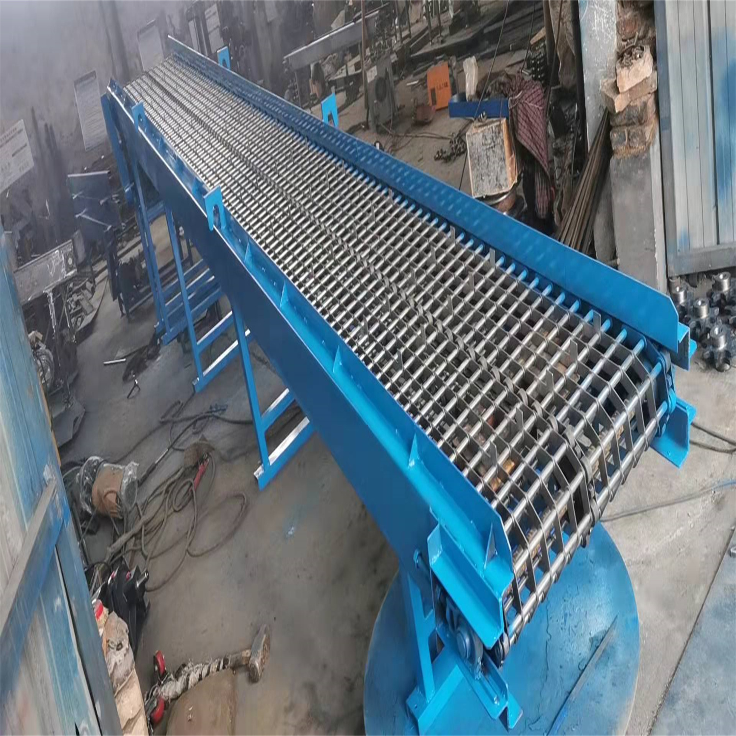 給成都欣欣高強度緊固件有限公司做的鏈條片傳送帶輸送機完工 長度3.5米 有效凈寬度600毫米 一個件從機頭到機尾20分鐘 相當于0.6米每分鐘的運行速度 不要風機 高度從780毫米 往上可調300毫米 速度可調 帶變頻器 采用鏈條片輸送帶 節距50.8毫米 支軸12毫米 帶三排鏈條 1.5千瓦 雙極減速機 完工