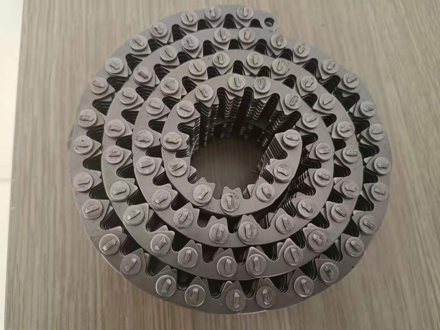 高速齒形鏈(哈瓦鏈)對于傳遞功率為50~6000馬力,超過每分鐘3000轉(zhuǎn)的中至高速,要求設(shè)計緊湊的應(yīng)用場合,它是理想的傳動鏈。哈瓦鏈是一種高精度齒形鏈,兼有皮帶的平穩(wěn)性和鏈條傳動緊湊性、經(jīng)濟性與長的使用壽命。其特點在于通過鉸鏈的銷軸和擺瓦間的滾動作用減少磨擦和實現(xiàn)節(jié)距伸長,其結(jié)果是傳遞功率能力的有效增長和減少多邊形效應(yīng)的危害。鏈板是經(jīng)過噴丸和預應(yīng)力處理,從而有較大的承載能力。具有三倍于無聲鏈的功率能力,具有較高的速度范圍,在滾子鏈工作能力急劇下降的高速區(qū),哈瓦鏈的能力卻是不斷提高。所以哈瓦鏈在許多場合具有無可爭辯的,令人矚目的優(yōu)點。適用于所有應(yīng)用高速原動機,例如柴油機和,氣輪機的功率傳動等。