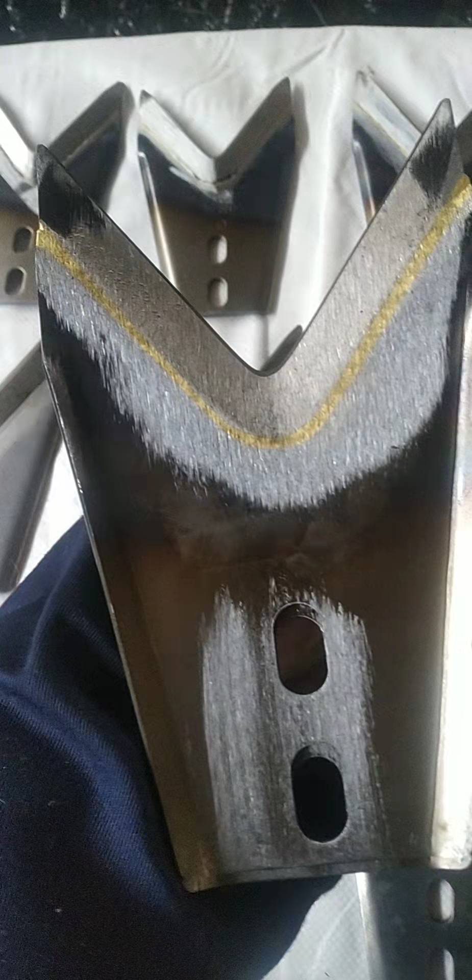 無痕玻璃供料機用玻璃剪刀片:一種玻璃機械供料機配件,用在玻璃器皿的高溫料滴玻璃水的剪切,用來剪切玻璃液態胎以成型玻璃制品,玻璃剪刀片分75度和85度常用規格,從材質上分焊接的和整體的。玻璃剪刀片有單口的和雙口的,多口的。玻璃剪刀片有弧形和V型口的。玻璃剪刀片有大單口,小單口。玻璃剪刀片的材質是鎢6鉬5鉻4釩2.有全鋼和加鋼的,其產品質量可靠,規格齊全,安裝方便,刃口紅硬,經久耐用,價格合理,是玻璃行業不可或缺的備件