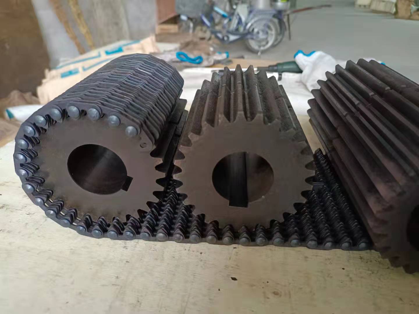 無聲鏈 齒形鏈輪 無聲鏈:也叫齒形鏈條,采用無聲齒形鏈輪帶動運轉傳動。寧津縣榮達機械制造有限責任公司定做各種無聲齒形鏈條,無聲齒形鏈輪。我們根據客戶自己的情況,客戶選型成功,我們根據客戶的數據非標定做各種齒形鏈條和無聲齒形鏈輪。齒形鏈條節距4.7625,6.35 9.525 12.7 15.875 19.05 25.4 31.75 38.1毫米的鏈條都能做,無聲齒形鏈輪根據客戶的齒數和外徑,內孔,鍵槽定做。無聲齒形鏈條的獨特優點:高速,無噪音,高承載傳動能力,轉矩大等等優點,逐漸取代精密滾子鏈條和同步帶。