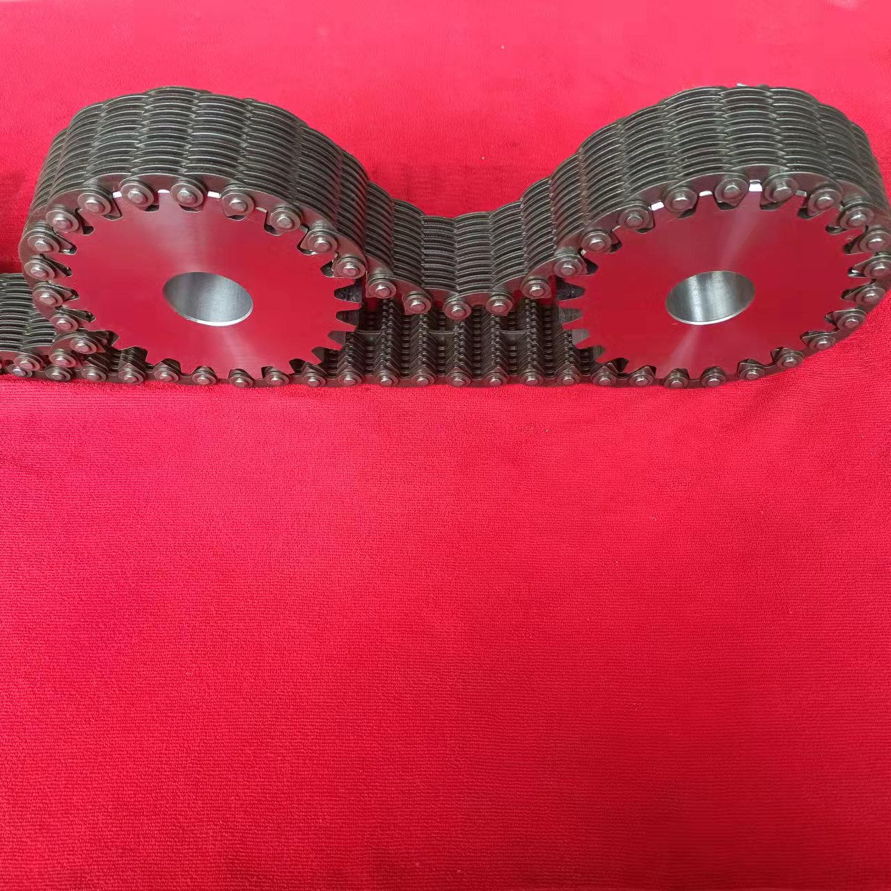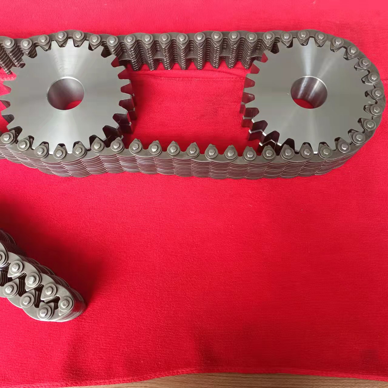 2、可靠性較高,齒形鏈的鏈節是多片式結構,當其中個別鏈片在工作中遭到破壞時并不影響整根鏈條的工作,使人們能夠及時發現并更換,如需增加承載能力只需在寬度方向較小尺寸(增加鏈片排數)。