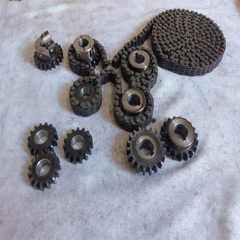 無聲鏈 齒形鏈輪 無聲鏈:也叫齒形鏈條,采用無聲齒形鏈輪帶動運轉傳動。寧津縣榮發齒輪廠定做各種無聲齒形鏈條,無聲齒形鏈輪。我們根據客戶自己的情況,客戶選型成功,我們根據客戶的數據非標定做各種齒形鏈條和無聲齒形鏈輪。齒形鏈條節距4.7625,6.35 9.525 12.7 15.875 19.05 25.4 31.75 38.1毫米的鏈條都能做,無聲齒形鏈輪根據客戶的齒數和外徑,內孔,鍵槽定做。無聲齒形鏈條的獨特優點:高速,無噪音,高承載傳動能力,轉矩大等等優點,逐漸取代精密滾子鏈條和同步帶。