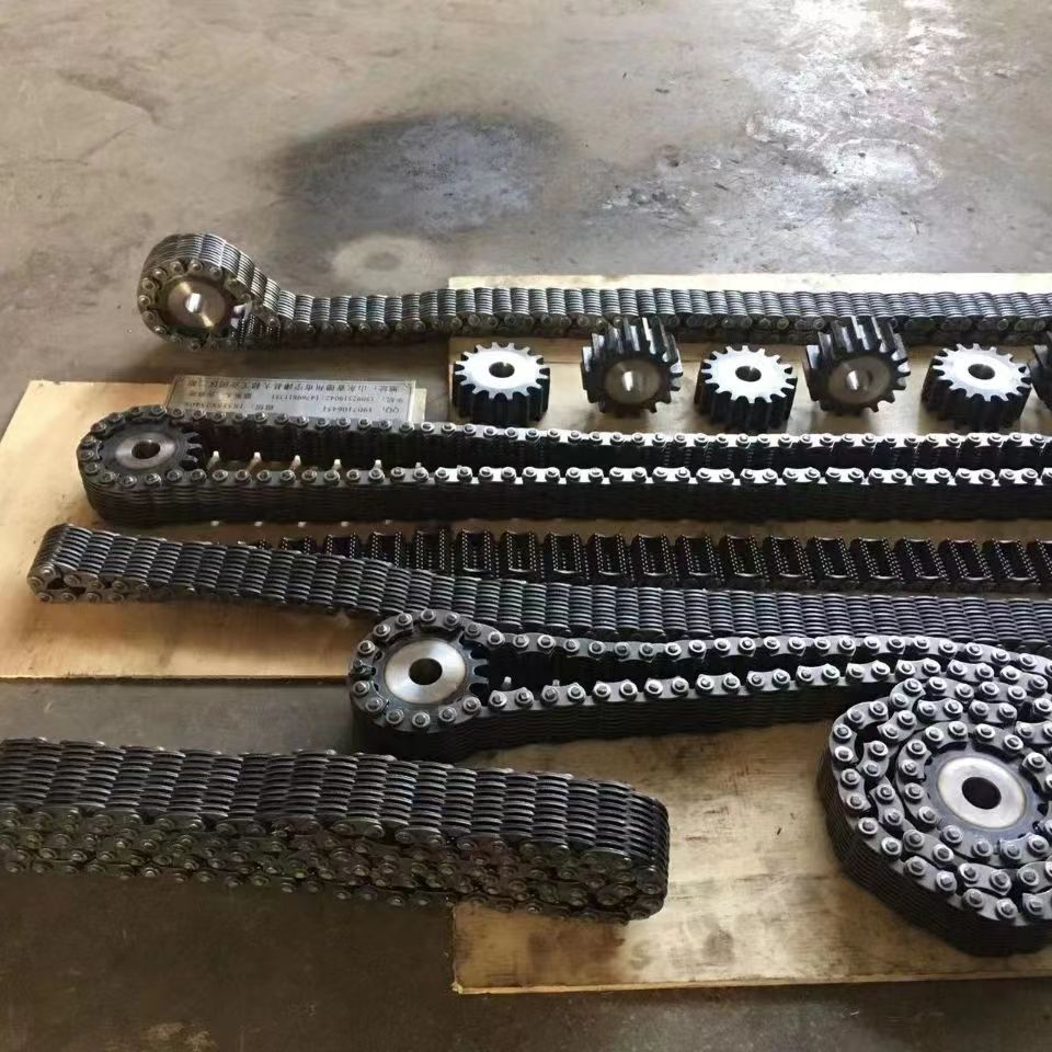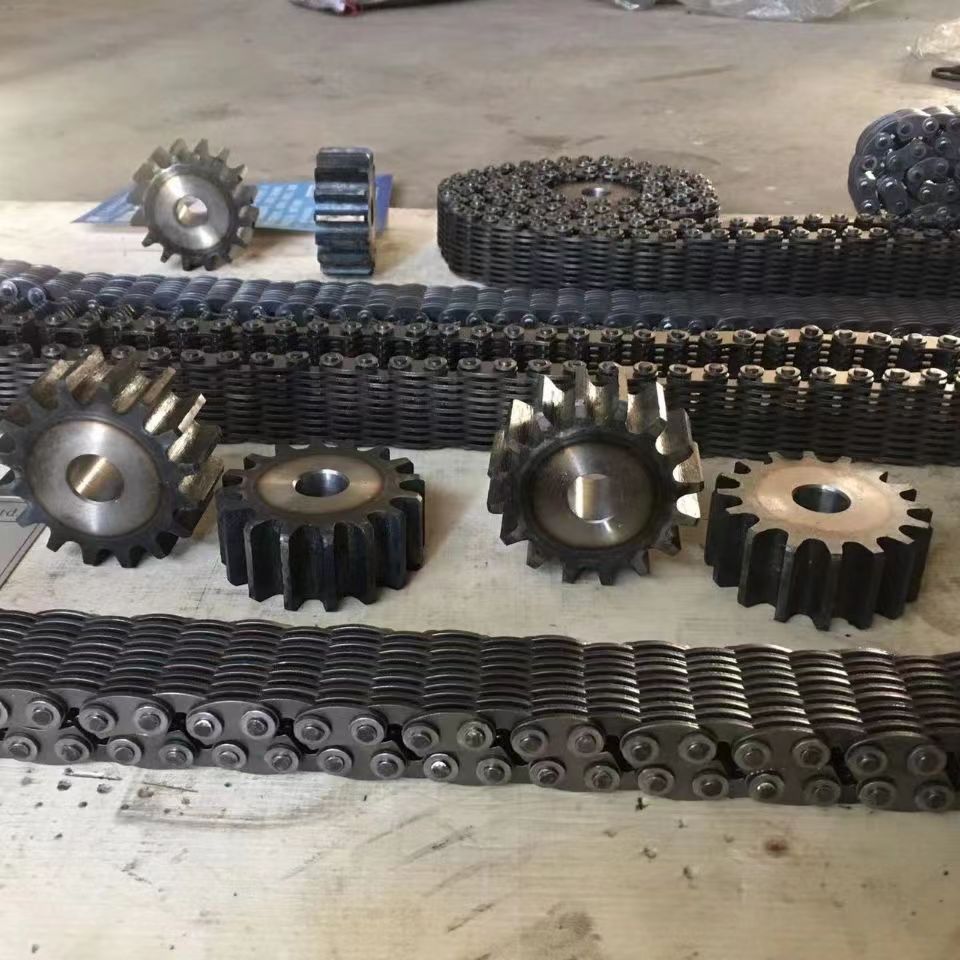無聲鏈 齒形鏈輪 無聲鏈:也叫齒形鏈條,采用無聲齒形鏈輪帶動運轉傳動。寧津縣榮發齒輪廠定做各種無聲齒形鏈條,無聲齒形鏈輪。我們根據客戶自己的情況,客戶選型成功,我們根據客戶的數據非標定做各種齒形鏈條和無聲齒形鏈輪。齒形鏈條節距4.7625,6.35 9.525 12.7 15.875 19.05 25.4 31.75 38.1毫米的鏈條都能做,無聲齒形鏈輪根據客戶的齒數和外徑,內孔,鍵槽定做。無聲齒形鏈條的獨特優點:高速,無噪音,高承載傳動能力,轉矩大等等優點,逐漸取代精密滾子鏈條和同步帶。