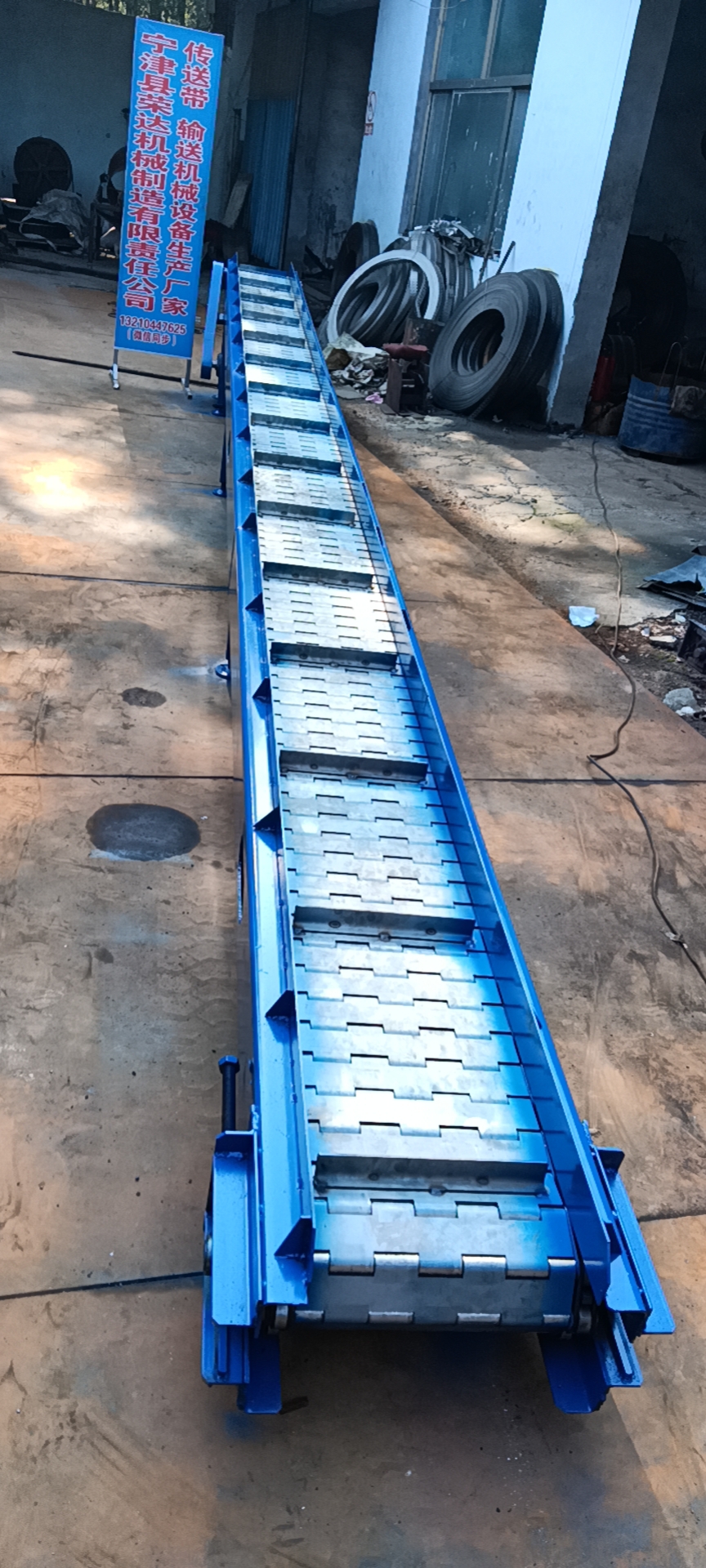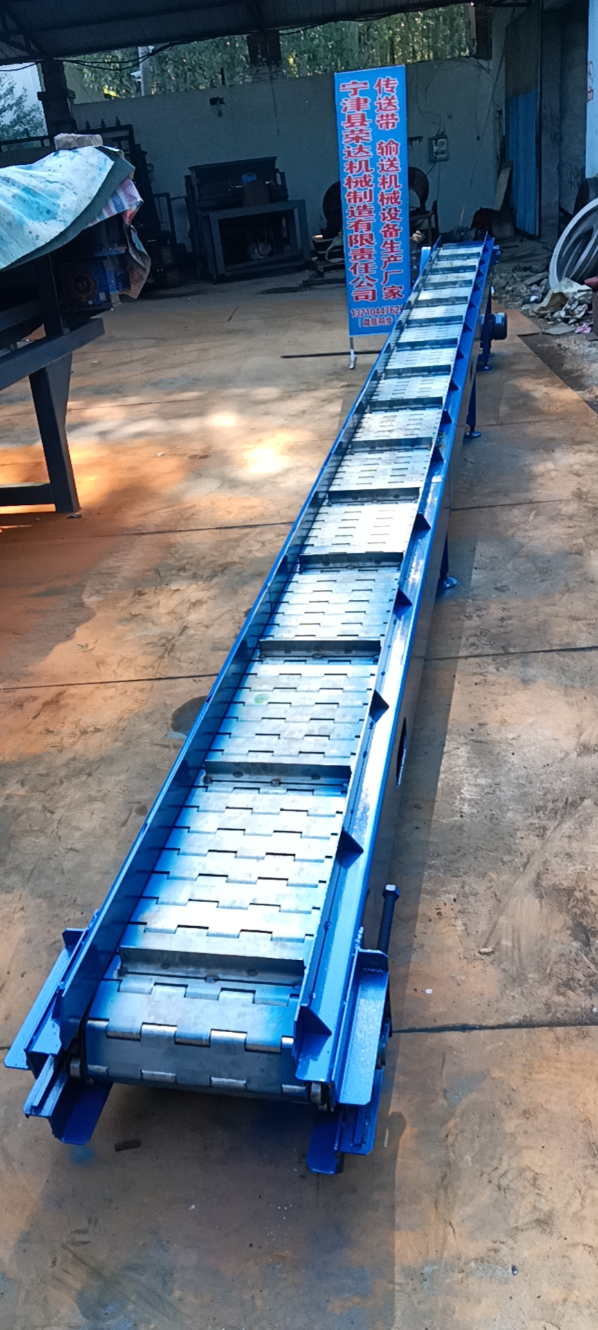 鏈板式輸送機,利用固接在牽引鏈上的一系列鏈板在水平或傾斜方向輸送物料的輸送機,以單片鋼板鉸接成環帶作為運輸機的牽引和承載構件承載面具有橫向隔片置于槽箱中驅動環帶借隔片將煤刮運輸出。它由驅動機構、張緊裝置、牽引鏈、板條、驅動及改向鏈輪、機架等部分組成。在冶金、煤炭、化工、電力、機械制造及國民經濟的其他工業部門中均得到了廣泛的應用。