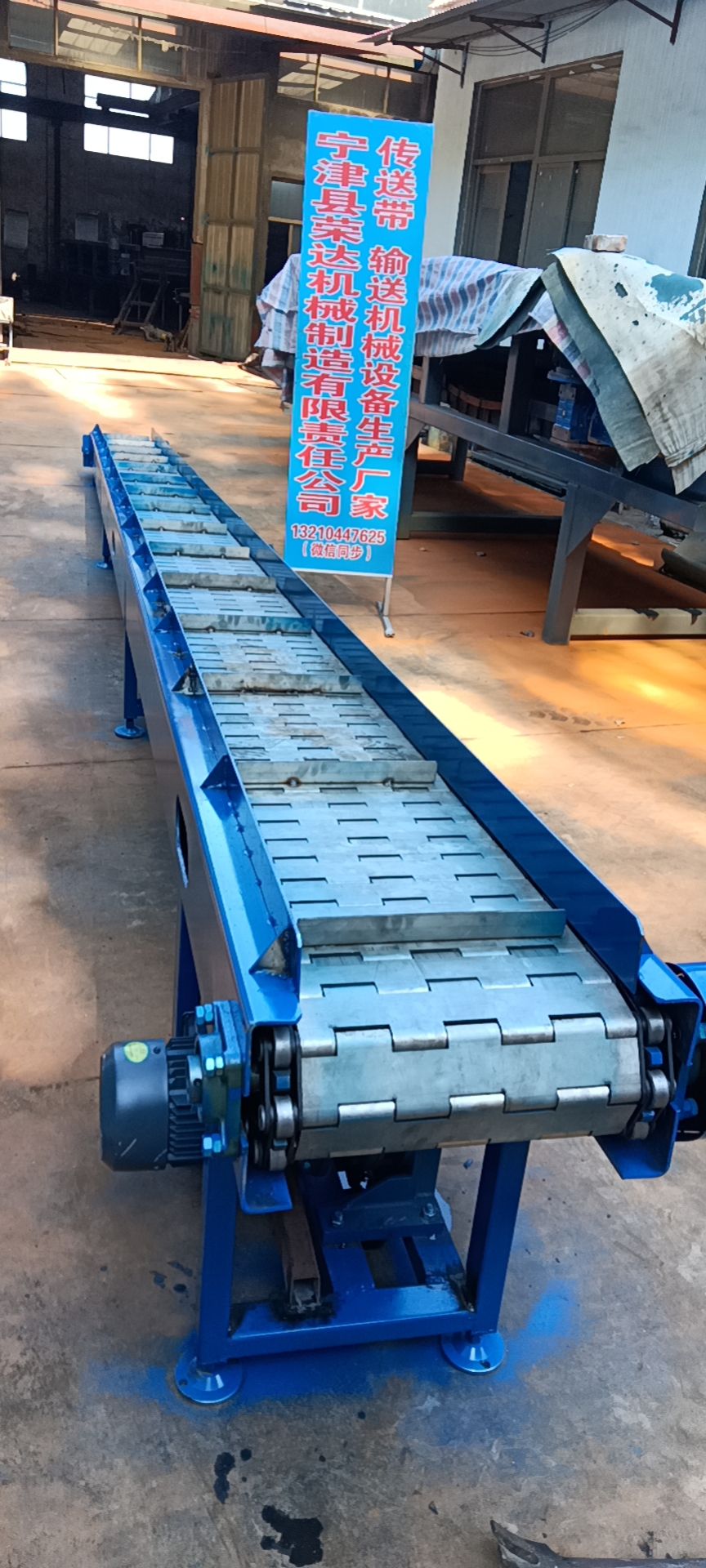 鏈板輸送機:又叫鏈板傳送機,鏈板線,鏈板傳送帶。是一種利用循環往復的鏈條作為牽引動力,以金屬板作為輸送承載體的一種輸送機械設備。國內市場上有兩種鏈板輸送機,一種是用鏈條,支軸和金屬板組成的輸送鏈板做成的輸送機;一種是用帶彎板的鏈條和金屬板組成的金屬板輸送帶做成的鏈板輸送機,另一種是平頂鏈鏈板輸送機。