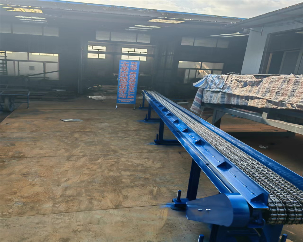 鏈條輸送機(jī) 輸送熱鍛造件的 長度8米 有效寬度220毫米 采用三根鏈條 變頻調(diào)速