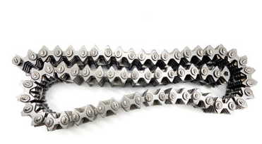 齒形鏈條傳動有著噪音小,可靠性較高,運動精度高(其運轉平滑性強于任何其他類型的鏈條)等比較突出的特點,所有齒形鏈條已成為一種應用廣泛的重要基礎零件部件。特別是在高速,重載,低噪音要求,大中心距離的工況下,其傳動性能優于齒形帶傳動,普通齒輪傳動及滾子鏈條傳動,齒形鏈條已經發展為汽車,機床,汽輪機,石油機械,軍用機械等眾多行業的傳動類型之一,如機床主傳動,發動機正時傳動及重要的操縱機構等等。另外齒形鏈條在高速運轉時,往往還要達到低噪音甚至靜音,所有齒形鏈條在許多場合還叫做靜音鏈條或者無聲鏈條,外導式齒形鏈條(圓銷式)內導齒形鏈條滾銷式 雙內導齒形鏈條 軸瓦襯瓦式齒形鏈條 雙面嚙合齒形鏈條 帶過渡彎板鏈節的齒形鏈條 單面齒形鏈條 雙面傳動齒形鏈條 傳動齒形鏈條目前國內使用的標準,GB/T 10855-2003,Inverted tooth silent chain and sprocket