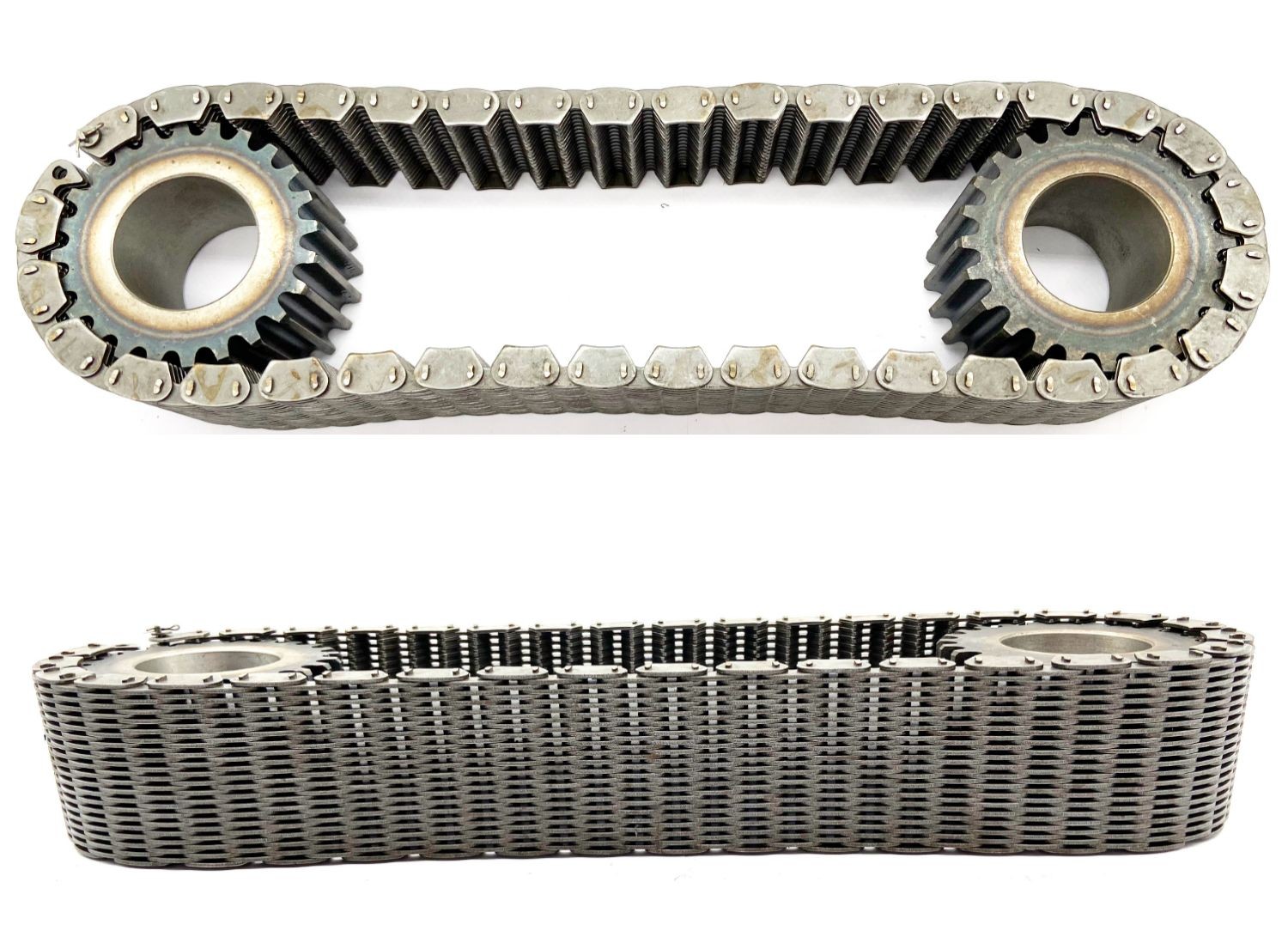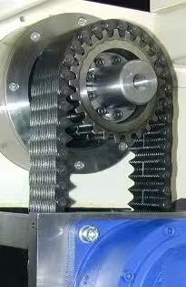 高速齒形鏈(哈瓦鏈)對于傳遞功率為50~6000馬力,超過每分鐘3000轉(zhuǎn)的中至高速,要求設(shè)計緊湊的應(yīng)用場合,它是理想的傳動鏈。哈瓦鏈?zhǔn)且环N高精度齒形鏈,兼有皮帶的平穩(wěn)性和鏈條傳動緊湊性、經(jīng)濟(jì)性與長的使用壽命。其特點在于通過鉸鏈的銷軸和擺瓦間的滾動作用減少磨擦和實現(xiàn)節(jié)距伸長,其結(jié)果是傳遞功率能力的有效增長和減少多邊形效應(yīng)的危害。鏈板是經(jīng)過噴丸和預(yù)應(yīng)力處理,從而有較大的承載能力。具有三倍于無聲鏈的功率能力,具有較高的速度范圍,在滾子鏈工作能力急劇下降的高速區(qū),哈瓦鏈的能力卻是不斷提高。所以哈瓦鏈在許多場合具有無可爭辯的,令人矚目的優(yōu)點。適用于所有應(yīng)用高速原動機,例如柴油機和,氣輪機的功率傳動等。