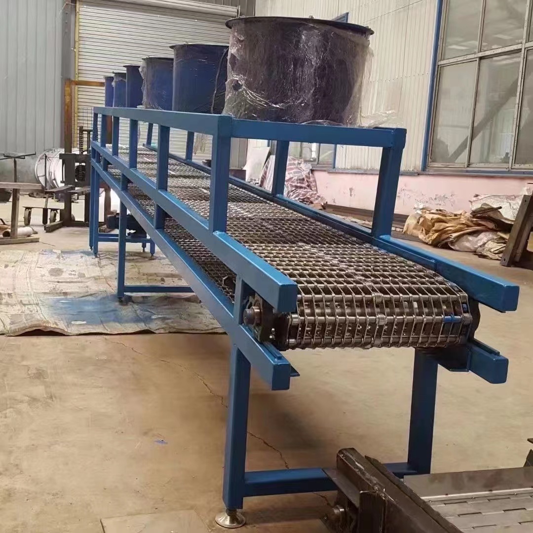 輸送鏈 鍛造自動化輸送鏈 傳送鍛壓輸送機,鍛打輸送機,熱鍛紅沖輸送機,鍛造熱處理淬火提升機,熱鍛造件降溫風冷輸送機 鏈條輸送機 鏈板輸送機 板式提升機 鏈條片輸送機 帶風機降溫輸送機 滾筒輸送機 熱鍛造件輸送機:是用于鍛造行業,用來輸送鍛造件的一種傳送帶,可以用于輸送圓鋼,加熱爐出來的紅毛坯,紅熱方鋼圓鋼,用于各個鍛壓機之間鍛件的輸送,用于水槽油槽鍛造件的熱處理淬火,用于熱鍛造件的風冷水冷降溫輸送。鍛造生產線的各個輸送傳送。 功能特點 1.速度快慢可調,有無極調速電機和變頻器控制柜控制速度快慢,操作簡單 2,輸送速度快,精密鏈條適合高速傳送,耐磨,適合長時間高速運轉傳送 3,輸送機可連續輸送,可間歇性輸送。 4,輸送機的寬度根據被輸送的金屬件的大小靈活的設計輸送機的寬度 長度根據輸送的距離來設計。5,輸送機可以做成水平直輸送的,提升爬坡輸送的。第一集:輸送鏈 耐高溫傳送鏈條 鍛造輸送鏈 鍛造輸送機 鍛造輸送鏈 冷卻鏈 降溫輸送鏈 熱鍛造輸送鏈 鍛造輸送鏈具有耐高溫、不變形等特點,且重量輕而強度大,耐磨性好,抗沖擊力強,維護性好等優勢。榮達擁有單排輸送鏈、雙排輸送鏈、串桿輸送鏈、板鏈輸送鏈、網鏈輸送鏈等不同形態的產品。根據不同類型的產品,工藝方式的不同,滿足客戶的各種不同應用場景需求。 榮達機械可以根據客戶的使用要求和現場安裝的需要,設計、制造各種規格的產品和設備,為客戶提供合理價格的優質產品。1,耐高溫2,耐磨性好 3,運行穩定4,抗沖擊力強 5,類型多并可定制