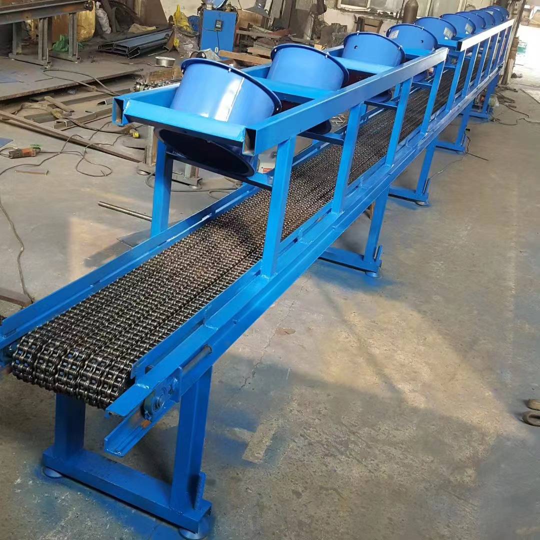 輸送鏈 鍛造自動化輸送鏈 傳送鍛壓輸送機,鍛打輸送機,熱鍛紅沖輸送機,鍛造熱處理淬火提升機,熱鍛造件降溫風冷輸送機 鏈條輸送機 鏈板輸送機 板式提升機 鏈條片輸送機 帶風機降溫輸送機 滾筒輸送機 熱鍛造件輸送機:是用于鍛造行業(yè),用來輸送鍛造件的一種傳送帶,可以用于輸送圓鋼,加熱爐出來的紅毛坯,紅熱方鋼圓鋼,用于各個鍛壓機之間鍛件的輸送,用于水槽油槽鍛造件的熱處理淬火,用于熱鍛造件的風冷水冷降溫輸送。鍛造生產(chǎn)線的各個輸送傳送。 功能特點 1.速度快慢可調(diào),有無極調(diào)速電機和變頻器控制柜控制速度快慢,操作簡單 2,輸送速度快,精密鏈條適合高速傳送,耐磨,適合長時間高速運轉(zhuǎn)傳送 3,輸送機可連續(xù)輸送,可間歇性輸送。 4,輸送機的寬度根據(jù)被輸送的金屬件的大小靈活的設(shè)計輸送機的寬度 長度根據(jù)輸送的距離來設(shè)計。5,輸送機可以做成水平直輸送的,提升爬坡輸送的。第一集:輸送鏈 耐高溫傳送鏈條 鍛造輸送鏈 鍛造輸送機 鍛造輸送鏈 冷卻鏈 降溫輸送鏈 熱鍛造輸送鏈 鍛造輸送鏈具有耐高溫、不變形等特點,且重量輕而強度大,耐磨性好,抗沖擊力強,維護性好等優(yōu)勢。榮達擁有單排輸送鏈、雙排輸送鏈、串桿輸送鏈、板鏈輸送鏈、網(wǎng)鏈輸送鏈等不同形態(tài)的產(chǎn)品。根據(jù)不同類型的產(chǎn)品,工藝方式的不同,滿足客戶的各種不同應(yīng)用場景需求。 榮達機械可以根據(jù)客戶的使用要求和現(xiàn)場安裝的需要,設(shè)計、制造各種規(guī)格的產(chǎn)品和設(shè)備,為客戶提供合理價格的優(yōu)質(zhì)產(chǎn)品。1,耐高溫2,耐磨性好 3,運行穩(wěn)定4,抗沖擊力強 5,類型多并可定制 方春領(lǐng) 13210447625 18315825408